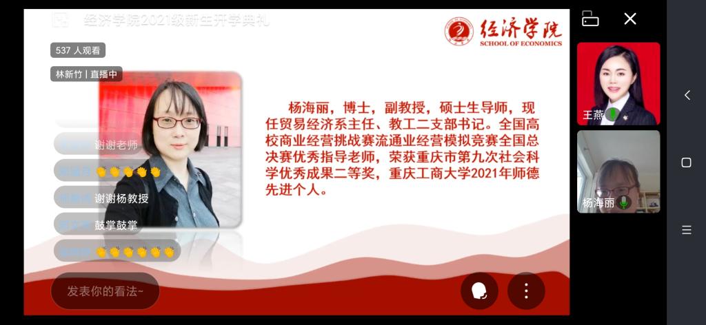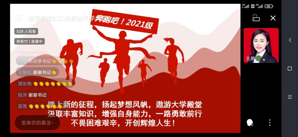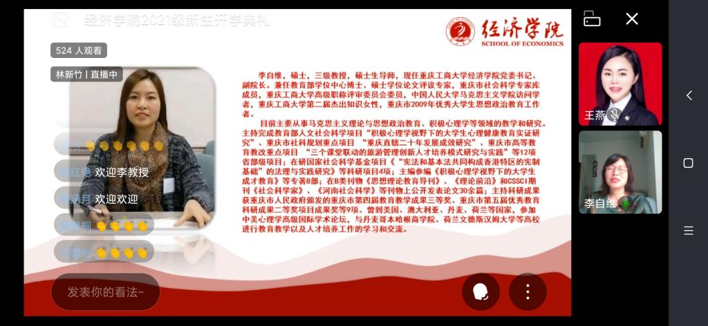 “敬道养正,励德修远”,9月11日上午,太阳成集团tyc122cc2021级新生开学典礼线上直播成功举行。122cc太阳集成游戏副校长、太阳成集团tyc122cc院长李敬教授、太阳成集团tyc122cc分党委书记李自维教授以及班子成员、系主任、辅导员,2021级532名本科生和50名研究生参与了本次典礼。典礼由学院党委副书记、副院长王燕教授主持。