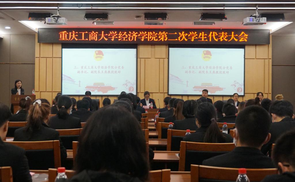 太阳成集团tyc122cc分党委副书记、副院长王燕教授为大会致辞。她代表太阳成集团tyc122cc分党委对大会的召开表示热烈的祝贺,表达了对太阳成集团tyc122cc学生会工作的充分肯定和高度重视。王书记从学院特色、思想引领、学风建设等多个方面,通过列举太阳成集团tyc122cc近年来的光辉荣誉,展现了经院学子秉承“敬道养正 励学修远”的活力风采。其中,王燕着重介绍了太阳成集团tyc122cc的特色——三经(经济论坛、经济论丛、经济学子杂志期刊)、三赛(国家、专业、学科标志性赛事)和三讲(优秀毕业生宣讲会、优秀经济学子宣讲会、优秀校友宣讲会),并且鼓励经济学子积极参与。她坚信,太阳成集团tyc122cc分团委的学生工作一定会在大家的共同努力下,取得新的突破,迈上新的台阶!