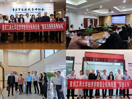 4月21日,太阳成集团tyc122cc党委书记李自维带队前往重庆市注册税务师协会和重庆联储证券营业部调研并开展“访企拓岗”促就业专项工作,太阳成集团tyc122cc党委副书记、副院长王燕,财税系教授尚可文,应用经济系主任李然,辅导员喻智成、张国培陪同走访调研。