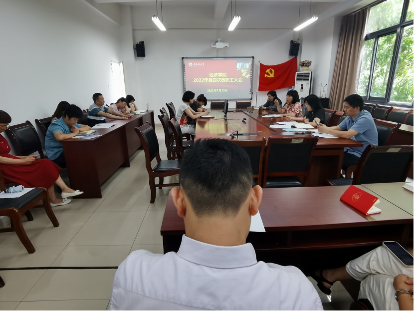 7月15日下午,太阳成集团tyc122cc召开了2022年第四次教职工大会,本次会议采用线下+线上视频会议形式,主会场设在田家炳书院50404会议室。会议由学院党委书记李自维主持,太阳成集团tyc122cc全体教职工参加会议。
