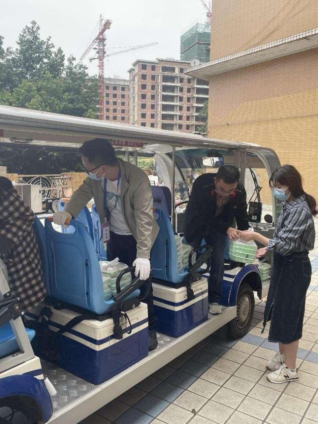 领导班子带领辅导员、志愿者全部下沉到防疫前线,积极投身疫情防控工作,分组排班参与志愿服务,快速构筑起抗击疫情的坚固防线。他们不顾自己的“小家”,义无反顾踏上了保卫“大家”的路。为了让学生能吃上一口热乎的饭菜,李自维书记、宋瑛副院长、黄潇副院长亲自带领辅导员来到食堂,卷起袖子加入了“盛饭大军”、“送饭大军”的队伍。为丰富学生的膳食营养,宋瑛副院长还亲自采购了一批零食、水果,送到各学生宿舍楼。他们用实际行动保卫学生的身体健康、践行着“敬业爱生”的铮铮誓言。