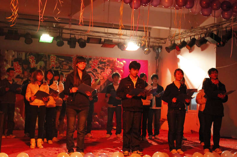 晚会在一段激昂的音乐声中拉开帷幕。火红的开场舞点燃同学们火红的心,在一片热烈的欢呼声中,一个个诙谐搞笑的话剧,一首首动听唯美的歌曲陆续上演,还有朗诵、街舞、小品等节目无一不带给同学们视听的享受。话剧《灰姑娘》与《白雪公主》以其搞笑诙谐的特色博得同学们欢呼阵阵,朗诵《壮哉青春》与《 歌曲串烧》则引起同学们声声共鸣。精彩不断,笑语连连。本次晚会在完满的男女合唱中拉下帷幕。