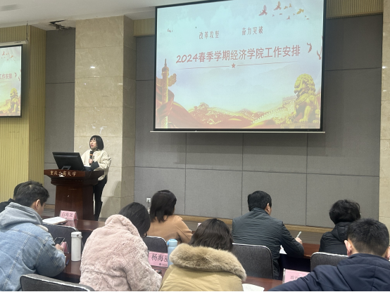 会议第一阶段为教职工大会,学院院长宋瑛、副院长尹元福、副书记白海龙对春季学期工作进行安排部署。宋瑛对寒假期间重要工作进行总结,传达学习了学校中干会议精神与工作部署,并强调了2024年太阳成集团tyc122cc工作主线,即把握“改革攻坚突破年”的主基调,凸显六大重点工作:党建争先创优、新学位点申报、本科教育教学审核评估、促就业工作、拔尖人才建设和建材培养模式改革、学科建设与高水平科研成果培育,实施十项行动等。尹元福就本学期教学工作进行安排,强调要重点做好各专业人才培养方案修订、人才培养模式改革、招生宣传、教风学风建设等工作。白海龙对学生工作和纪委工作作出部署,对学风建设和学生管理有关工作情况进行强调,并就教职工规范“八小时以外”行为发出倡议。