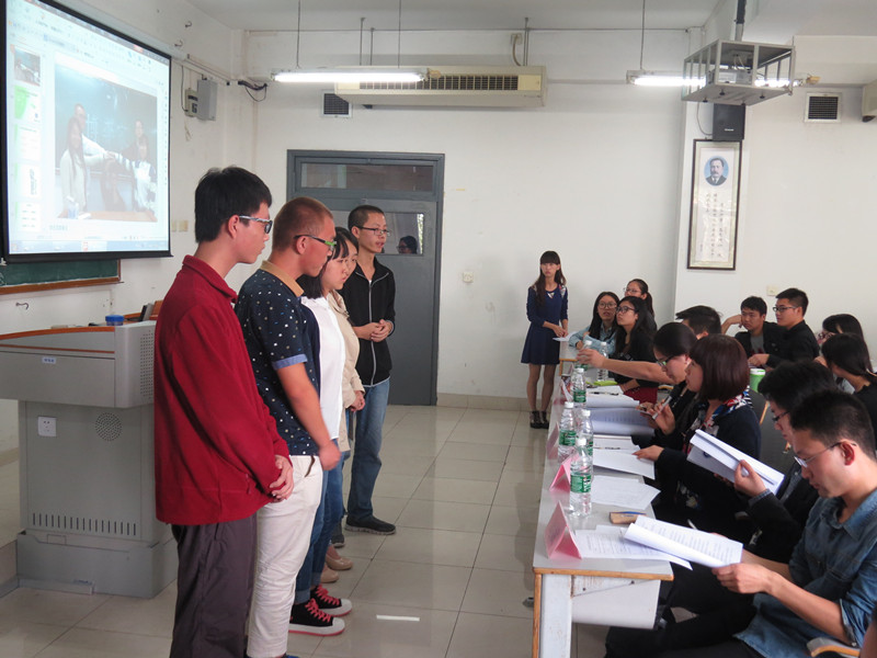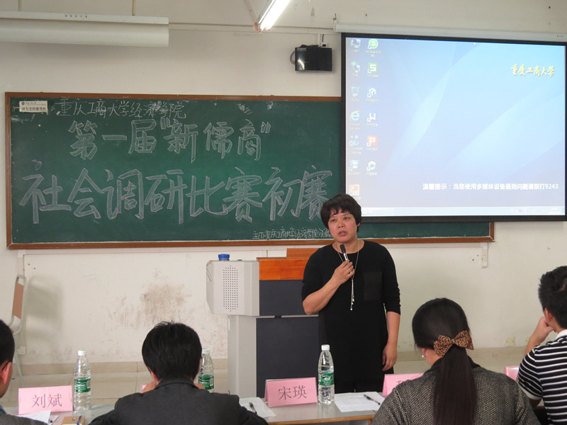 10月24日下午2点由太阳成集团tyc122cc分团委学生会主办的第一届“新儒商”社会调研比赛复赛在博智楼07410教室举行。太阳成集团tyc122cc党总支雷菁副书记、刘斌老师、易淼老师、宋瑛老师、程莉老师、张驰老师担任评委出席比赛。