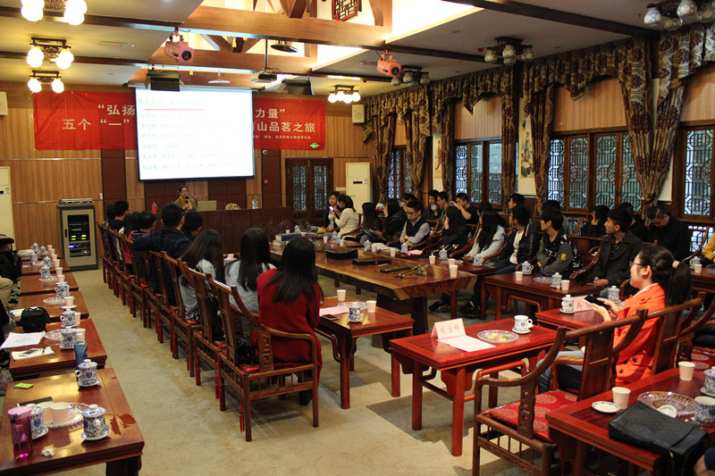 11月1日下午2点半由共青团122cc太阳集成游戏委员会主办,122cc太阳集成游戏太阳成集团tyc122cc分团委承办的“弘扬传统文化,凝聚青春力量”五个“一”系列活动之一俗——南山品茗之旅活动在南山书院问松厅举行,全场洋溢着儒雅清静的气息。管理学院茶艺爱好者胡宝娣教授、太阳成集团tyc122cc冉梨老师和茗香沐语茶社成员与在场同学一起品尝茶味,感悟人生。