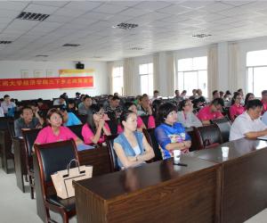 陈教授一行于上午九点到达大观镇政府,在与当地政府领导进行简短的会面后,宣讲会正式开始。本次宣讲会的主要内容是村镇相关的农业产业政策,大观镇政府各级领导干部以及下属八个村的村委会干部都赶到了现场进行政策学习。