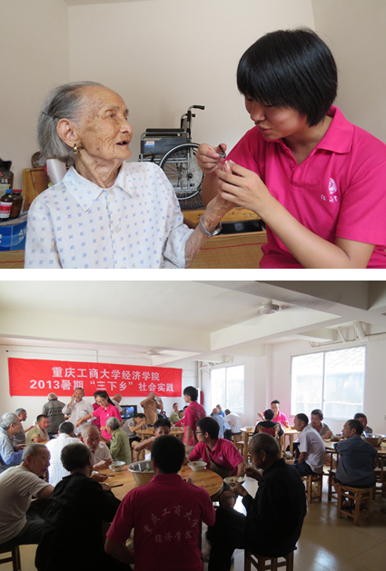 7月5日,122cc太阳集成游戏太阳成集团tyc122cc暑期“三下乡”社会实践团的成员们,来到铜梁县二坪镇兴龙社区敬老院,开展“关爱长者、用心陪伴,畅聊‘中国梦’”活动。
