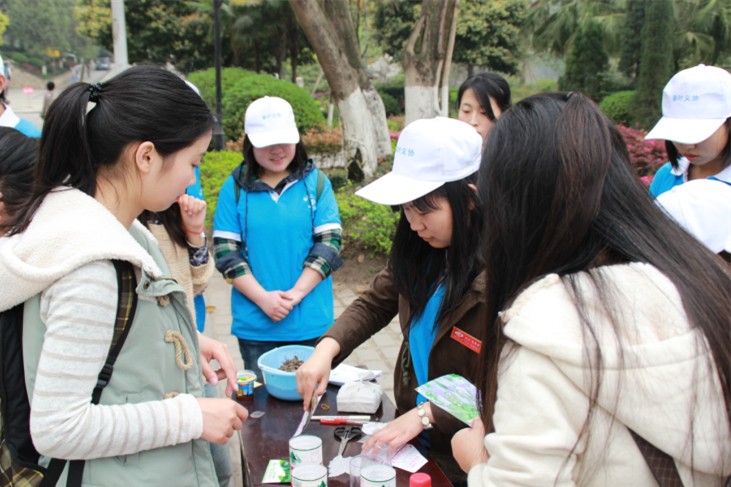 活动中,志愿者首先介绍关于使用一次性用具的危害,让广大师生明白一次性的筷子、饭盒对环境危害甚大。随后,志愿者给同学们分发了大量了花种。愿大家都能够为春光明媚的三月增添了一抹盎然的绿意,更是种下了大家绿意的希望之春。最后过往师生写下自己的环保宣言,表示会为环保贡献自己的力量。