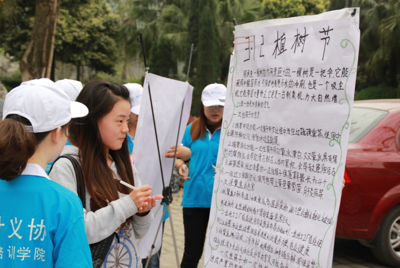 2013年3月12日,是全国第35个义务植树节。当天,太阳成集团tyc122cc义工志愿者协会在主校7教门口展开以“让绿色铺满大地,让地球更年轻”为主题的环保宣传活动,为广大师生广度宣传环保知识。