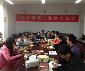 2013年3月28日上午九点半,太阳成集团tyc122cc2010级产业经济学专业毕业生交流会在田家炳404会议室顺利举行,参加本次交流会的有太阳成集团tyc122cc党总支张筱璐书记、辅导员张涛老师、2010级梁俊、汪秀、张琳莉、周婕同学以及2012级产业经济学专业全体研究生。