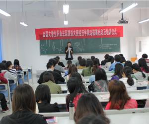 为了更好地搭建学生创业就业职业平台,提升学生的职业竞争力,4月3日中午,太阳成集团tyc122cc在田家炳书院410教室成功召开全国职业规划大赛太阳成集团tyc122cc选拔赛的启动和培训仪式。太阳成集团tyc122cc党总支张筱璐书记、雷菁副书记、学团办杨华俊主任、分团委林新竹书记、就业创业职业指导站的郝颖、黄玲老师和各位辅导员老师出席了启动仪式。上届全国职业规划大赛获奖选手刘宇琴同学和重庆市获奖选手张书琪、刘力维同学,北6和北21栋就业创业职业指导站的学生干部以及10级、11级的同学们参与了此次活动。