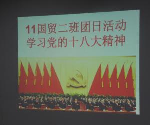 近来,中国共产党第十八次全国人民代表大会在北京胜利召开,作为当代大学生有必要“家事国事天下事事事关心”,对一些政治热点做一定的了解,以丰富自身的政治修养,提高思想道德素质,做一个全面发展的合格大学生。为此,11级国贸二班开展了一次以“学习党的十八大精神”为主题的团日活动。