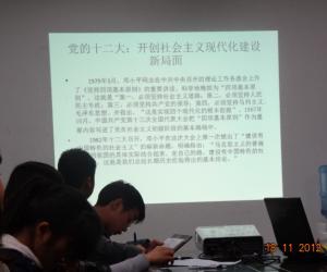11月18日,团日活动在田家炳404会议室举行。活动从回顾历史开始,支持人让同学们了解十八大召开背景、会议议程、基本内容,并观看十八大开幕式视频。之后,歌曲《歌唱祖国》和小品《我和十八大》的表演使现场的气氛一下活跃起来了。接下来是整个活动的高潮部分:有奖竞答。由主持人向现场同学提问。提问更加深了同学们对十八大的了解。在活动接近尾声的时候,全班同学自由发表自己对十八大的看法并参与讨论,虽然大家看法有所不同,但同学们都纷纷表示了对党的十八大胜利召开的祝贺和对我国未来美好前程的祝愿。