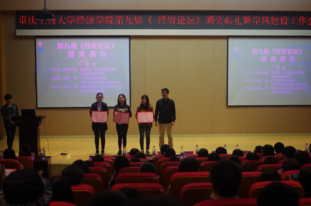 会议包含第九届《经贸论坛》颁奖典礼和学风建设工作会两个环节。会议开始,分团委书记林新竹老师介绍了本期《经贸论坛》评选活动的开展情况。本期《经贸论坛》收到来自学院各个年级各个专业的学生来稿65篇,经过专业的评委老师评审筛选最终收录19篇优秀论文载入其中。内容涵盖广泛,大多涉及经济热点问题,如互联网、农村空巢现象和大学生就业困难等,展现了我院学子关注热点,专注学术研究的积极态度。随后由学院杰出校友,北京奥维云网大数据科技股份有限公司董事长喻亮星学长为获奖学生颁奖。喻亮星学长为同学们分享了他在大学时代的经历,鼓励创业,希望同学们在“互联网大数据”成为热点的当下,能在现实中求变,在太阳成集团tyc122cc有更多的收获。获奖学生代表13级贸经专业廖国甜同学也分享了她在参与学科竞赛的过程中所收获的许多实践经验以及对专业学习和以后成长的帮助。陈新力院长代表学院向喻亮星校友表示诚挚的感谢,并鼓励太阳成集团tyc122cc在校同学们勇于创新、积极求索,将太阳成集团tyc122cc“心中有梦想、行动有热情”的精神不断弘扬,再创佳绩!