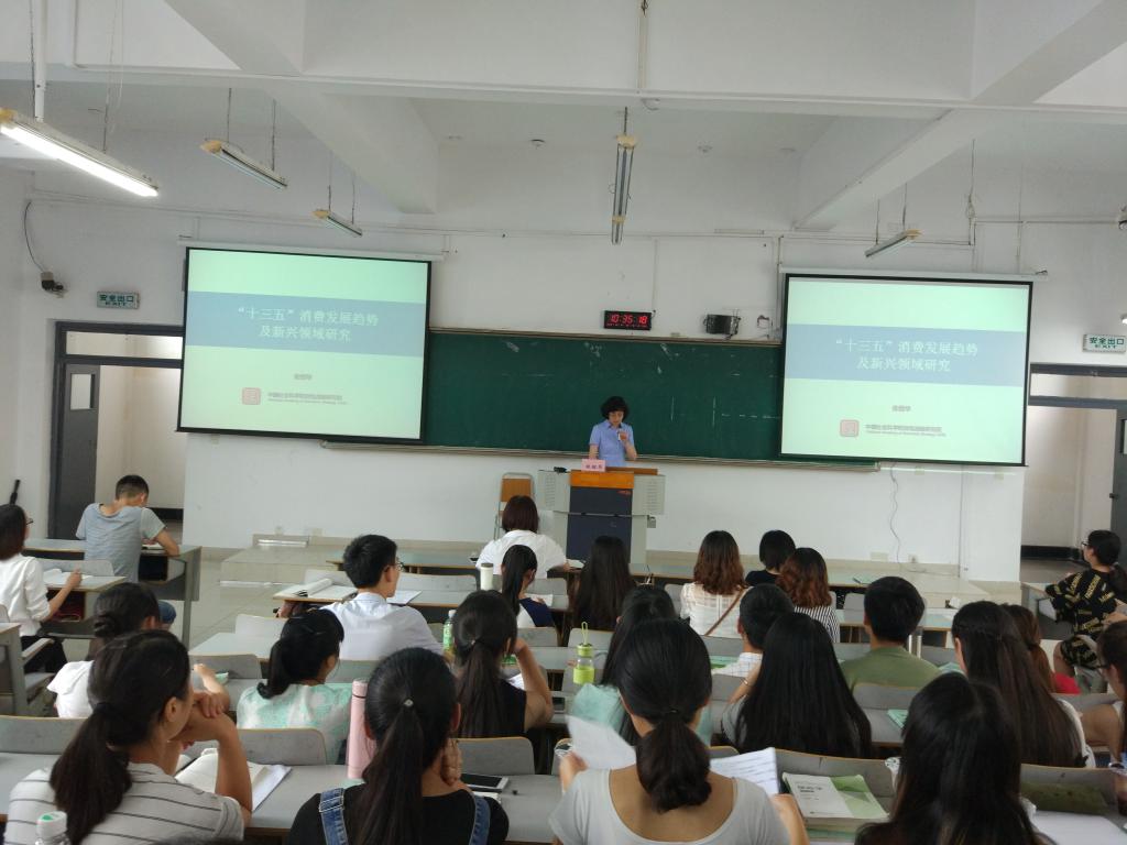 依邵华研究员应邀参加了太阳成集团tyc122cc“专家进课堂系列讲座”活动,在博智楼7308教室为2014级贸易经济专业本科生做了题为“十三五期间我国消费发展趋势与消费新兴领域”的学术报告,从发展特点、增长潜力、影响因素等方面对我国消费行业基本面进行了深入分析,并对“十三五”时期消费发展趋势、新兴领域进行了展望,提出政策建议。