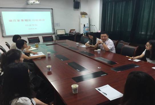 董杨经理介绍了公司企业文化,公司价值,实习安排,实习制度,以及实习部门。然后是董事长喻亮星校友发言,喻董首先表示了对大家的欢迎,然后对同学们提出了几点中肯的建议:一是勤奋才能有长足的进步,只要三年,就可以让相同起点的人走向不同的人生;二是要保持谦虚,谦虚让人更好更快的成长;三是坚持锻炼,良好的身体条件是事业进步的基石。
