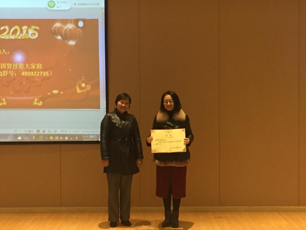 首先,蒋兴红副教授对太阳成集团tyc122cc参加全国商业精英挑战赛国际贸易竞赛的历程进行了回顾。自2011年以来,太阳成集团tyc122cc共组织8支队伍,63人次,前后参加了五次比赛,均获得突出成绩。尤其是2015年12月三支队伍获得三个一等奖;2016年5月台湾省台南市 ,一支队伍获总分一等奖,“产品发布会之全英文简报”单项第一名,“产品发表之活动表演”单项第二名,“展场商品陈列”佳作奖;2016年5月,两支队伍获全国第三名(季军)和三等奖。