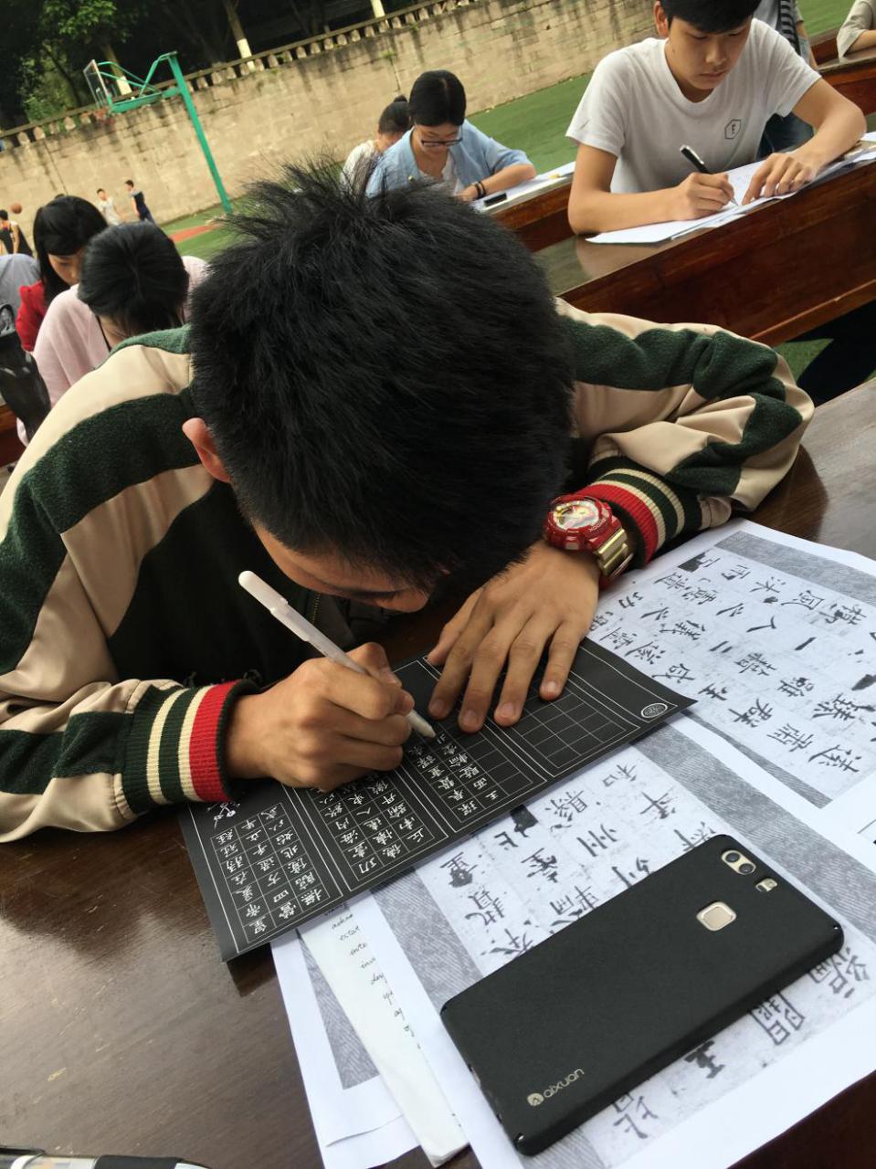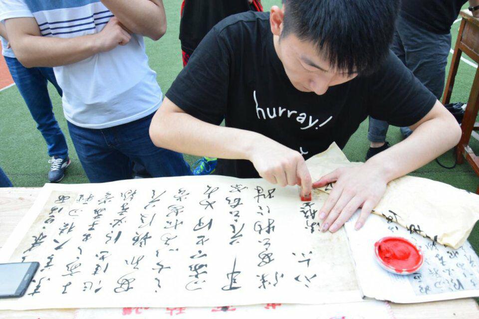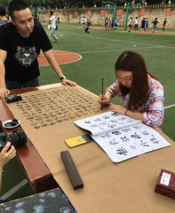 2017年5月12日,初夏的下午,凉风习习,墨香阵阵。122cc太阳集成游戏的绿茵场显得格外清爽,但是今天的绿茵场并非一个体育竞技场,而是一个挥毫泼墨的书法比赛现场。