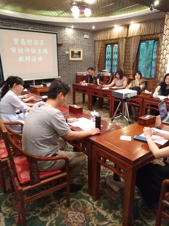 太阳成集团tyc122cc贸易经济系(贸易经济专业和会展专业)为了提升教师教学水平,加强教师之间的教学研讨,以2017年审核评估为切入点,于2017年5月19日在南山书院举办了别开生面的主题教研活动。本次教研活动为教师之间就审核评估的要点进行交流提供了机会,为加强教师之间就教学问题和教学质量提升进行交流提供了平台,并就2017年人才培养方案修订进行了分专业研讨,是一次具有深远意义的教学活动。贸易经济系(包括贸易经济和会展专业)全体教师参加了这次活动,会议由杨海丽主任主持。