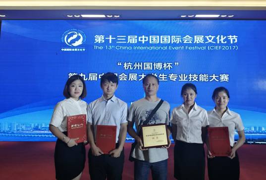 在8月17日举行的以杭州国际博览中心冠名的“杭州国博杯”第九届中国会展院校大学生专业技能大赛,分为方案演讲、专业问题抽答、个人才艺展示三个部分,分别考察评判参赛队伍及选手的会展综合技能、团队协作能力和个人演讲风采。我院会展学生在方案演讲环节,推出和展示了以“2018杭州国际戏曲文化产业博览会”为主题的策划方案,得到现场专业评委与企业评委的好评。在第二个环节的团队回答问题中,我院代表队抽到了“绿色会展的含义及影响效应”这一专业问题,4位参赛学生分别从绿色会展的含义、绿色会展的场馆效益、经济和社会效益、乃至绿色会展对我国会展国际化和品牌化的助力作用等几大方面进行陈述,严谨却又不失风趣,赢得了评委的高度赞扬。经过两个环节紧张激烈的角逐,我院代表队团体总分排名第四,最终获得了大赛铜奖。