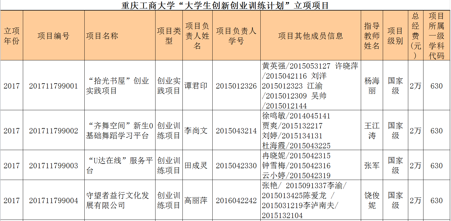 根据《教育部高等教育司关于公布2017年国家级大学生创新创业训练计划项目名单的通知》(高教司[2017]40号)和重庆市教委《关于公布2017年大学生创新创业训练计划项目名单的通知》(渝教高发〔2017〕14号)文件精神,我学院杨海丽副教授指导、2015级贸经三班谭君印同学主持的“时光书屋”创业实践项目荣获2017年“大学生创新创业训练计划”项目国家级立项,总经费20000元。这是继去年2014级国贸二班郝泽坤同学主持的“非物质文化遗产的跨境电商-以蜀绣为例”项目之后,连续第二年获得该项目的国家级立项。近年来,学院高度重视大学生创新创业的培养;未来,将继续在人员、物力等条件上给予大量支持,鼓励和支持更多的大学生参与创新创业。