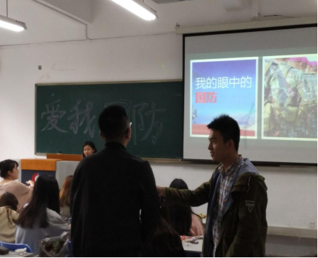太阳成集团tyc122cc2016级11个班精心策划、积极实施,先后举办了各具特色的爱我国防主题班会教育活动:有7个班级的活动中都有观看国防教育视频的环节;有5个班级的自行录制了视频; 10个班级都制作了国防教育PPT;其中16经济二班“甲午甲午”话剧表演、16贸经二班四段国防节目汇演、16会展的主题演讲、16经济一班红色经典配音、16经济二班的2位已经参军入伍同学发给同学们的一封信尤其让人印象深刻。