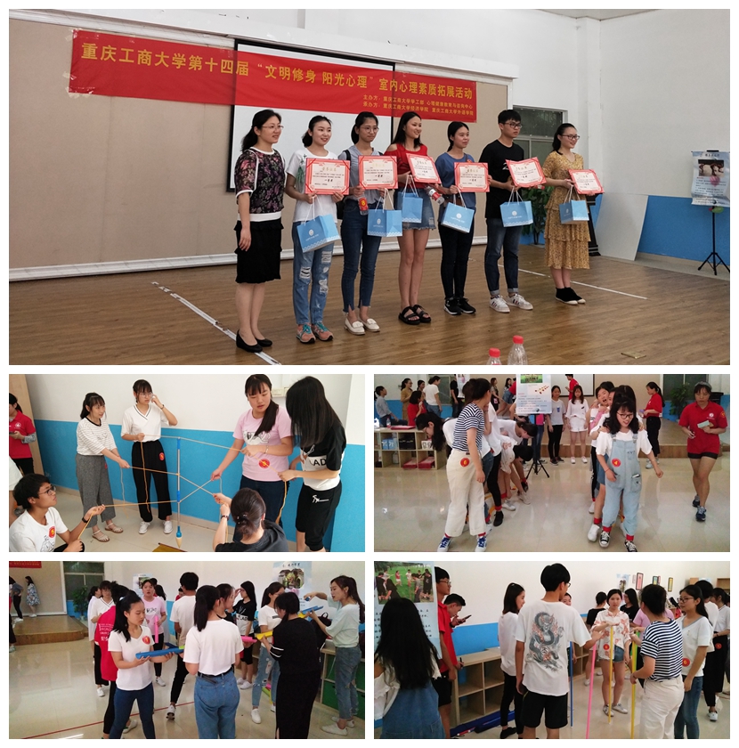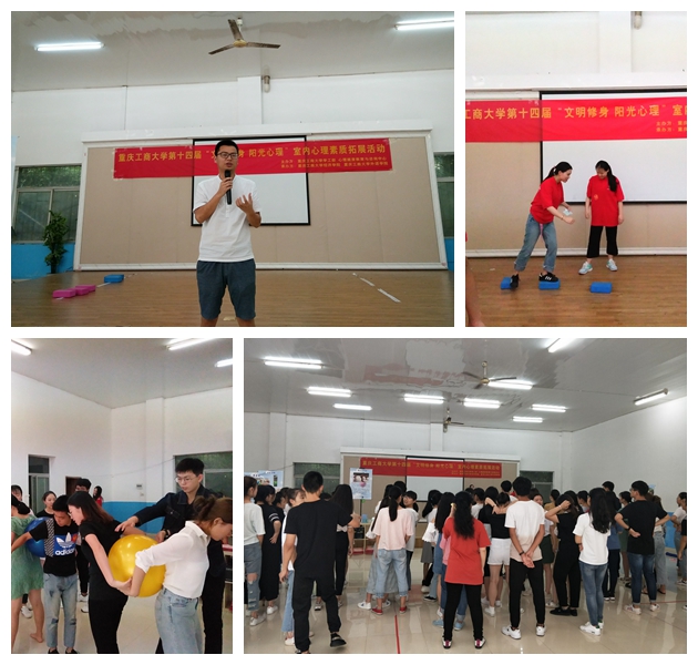 为了提高大学生的心理健康素质,帮助同学们提高团队协作精神和人际交往能力。由太阳成集团tyc122cc党员服务站和外语学院党员服务站联合承办的122cc太阳集成游戏第十四届“文明修身 阳光心理”系列活动之室内心理素质拓展活动于2018年5月18日下午两点半在南岸校区外语活动中心顺利开展。122cc太阳集成游戏心理教育与咨询中心的周明老师、太阳成集团tyc122cc的于频副书记、郝颖老师和外语学院的吴欢欢老师都来到活动现场与近百名报名参赛的同学们互动。在工作人员的耐心指导和同学们的积极配合下,活动得以圆满成功,参与同学们都表示受益匪浅。