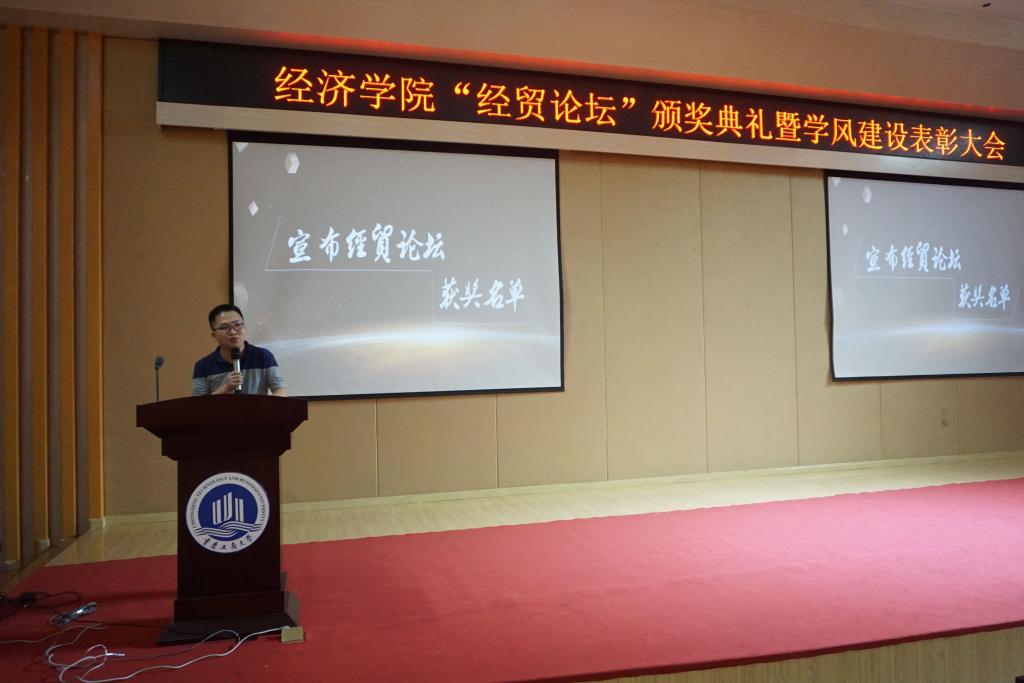 5月18日下午2点,第十一届“经贸论坛”颁奖暨学风建设表彰大会在田家炳209顺利举行。出席本次活动的嘉宾为太阳成集团tyc122cc分党委王小玲书记,分党委于频副书记,院长助理黄潇老师,经济学系主任李然老师,贸易经济系主任杨海丽老师,国贸系王美英老师,会展系杨军老师及全体辅导员老师。