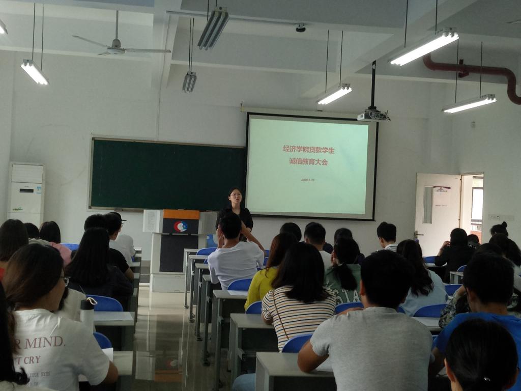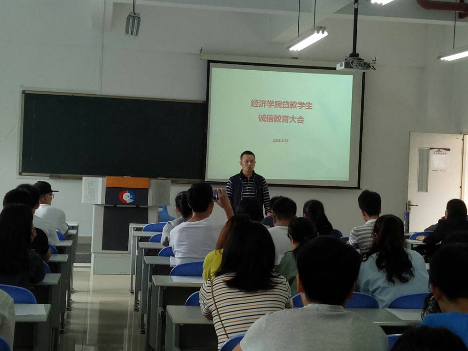 5月23日下午1点,太阳成集团tyc122cc贷款学生诚信教育大会在田家炳406顺利举行,我院分党委于频副书记、学院资助工作联系人喻智成老师及全体贷款学生参加会议。