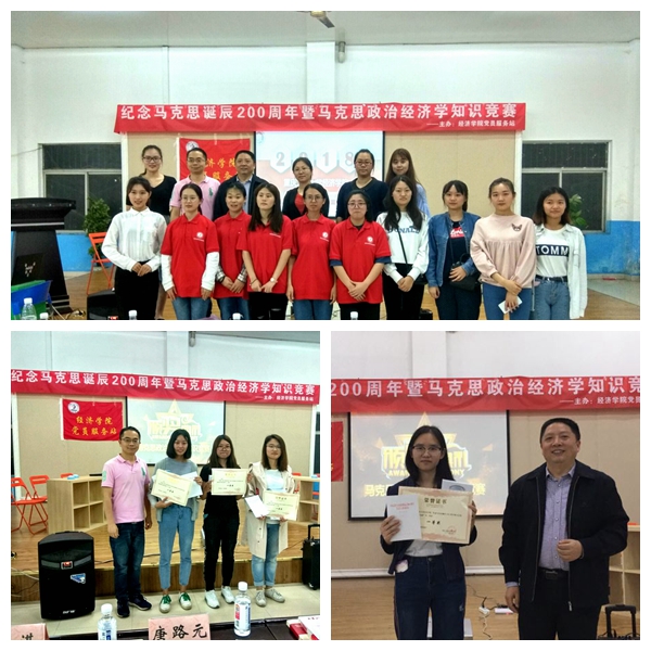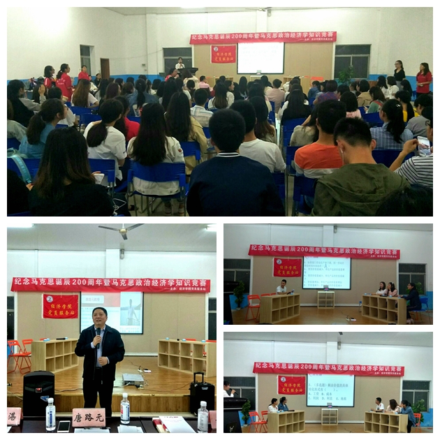 2018年5月31日,为了纪念马克思诞辰200周年,太阳成集团tyc122cc党员服务站于南岸校区外语活动中心举办了马克思主义政治经济学知识竞赛活动。活动邀请到太阳成集团tyc122cc博士生导师唐路元教授,太阳成集团tyc122cc分党委于频副书记,学生公寓管理科科长冯湛老师,太阳成集团tyc122cc党员服务站指导教师郝颖。活动开始前半个小时,现场早已座无虚席,同学们兴致勃勃、热情高涨,而参赛选手们更是摩拳擦掌,信心十足地等待着比赛开始。