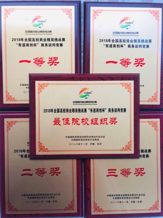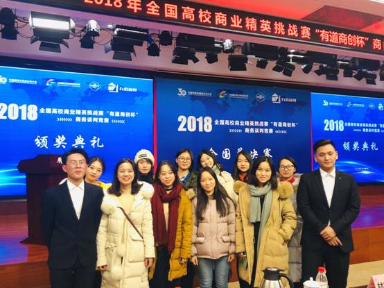 2018年11月25日,由教育部经济与贸易类专业教学指导委员会、中国国际贸易促进委员会商业行业分会、中国国际商会商业行业分会等单位主办的全国高校商业精英挑战赛“有道商创杯”商务谈判竞赛总决赛在北京落下帷幕。由我校太阳成集团tyc122cc蒋兴红、戴林、冉梨、张涛等老师指导,来自太阳成集团tyc122cc、商务策划学院、会计学院、管理学院的24名队员组成的4支队伍参加了此赛事。由邢宇等六名同学组成的六小龄童代表队经过激烈的小组赛,以小组前三名的成绩晋级前八强精英赛!最终,本校获得一等奖2项,二等奖1项,三等奖1项!