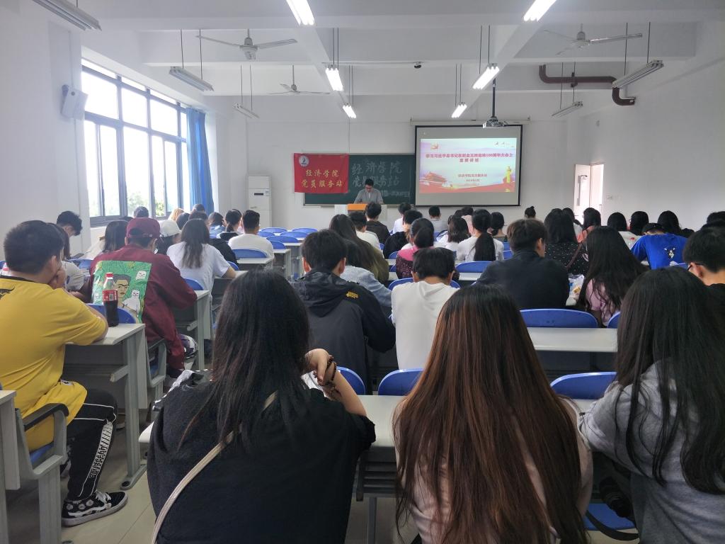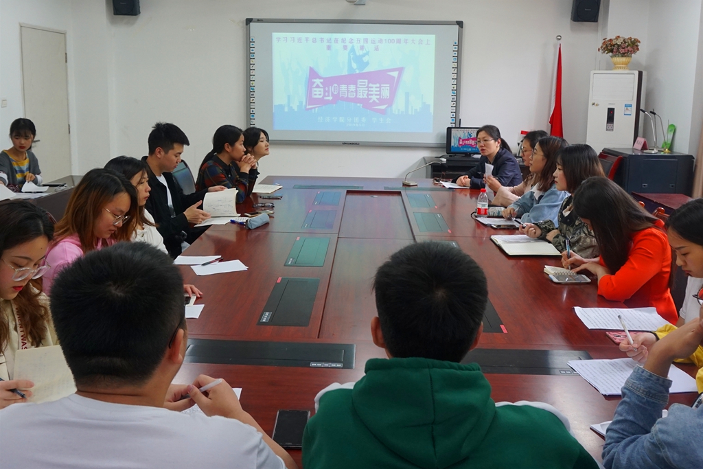 2019年5月5日,太阳成集团tyc122cc分团委、学生会、党员服务站等学生组织,以座谈会、学习分享会等形式学习习近平总书记在纪念五四运动100周年大会上的重要讲话,太阳成集团tyc122cc党委于频副书记领学了讲话精神。