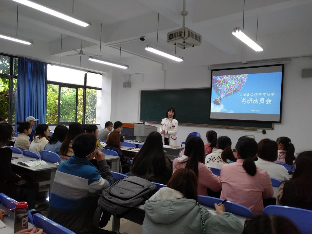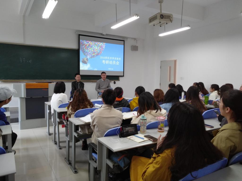 为了进一步提高16级经济学实验班学生的考研热情,帮助同学们确立正确的奋斗目标,掌握相关考研技巧,了解更多考研信息,我院于近期开展了“经济学实验班班级学风建设系列活动”:考研动员会和考研经验交流会。