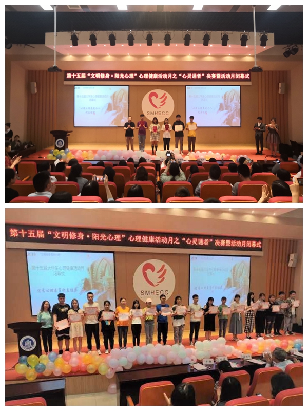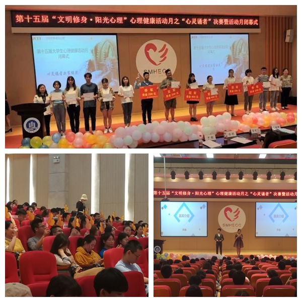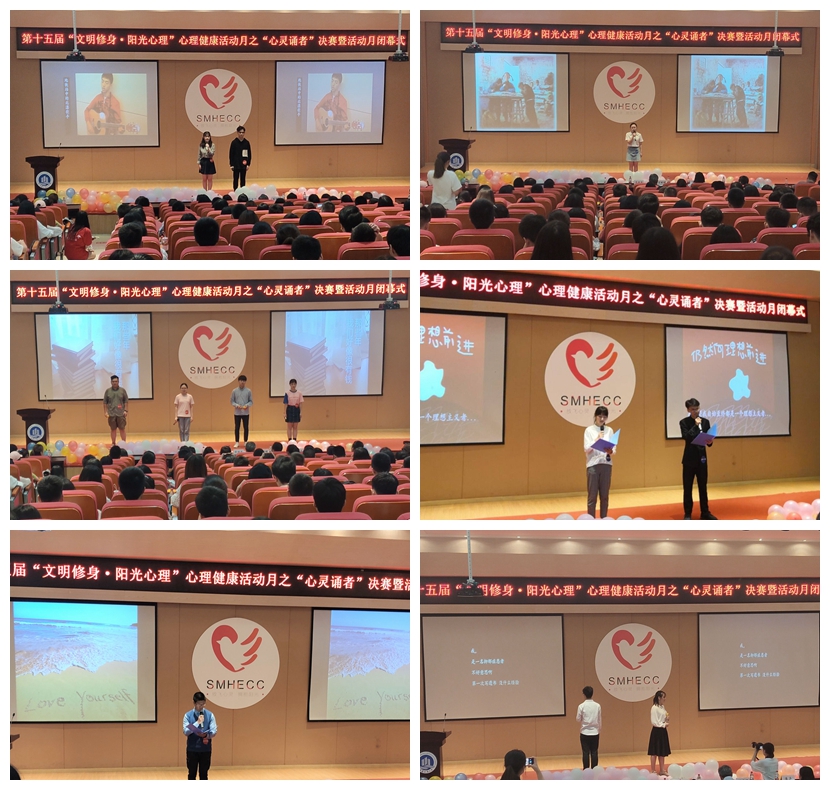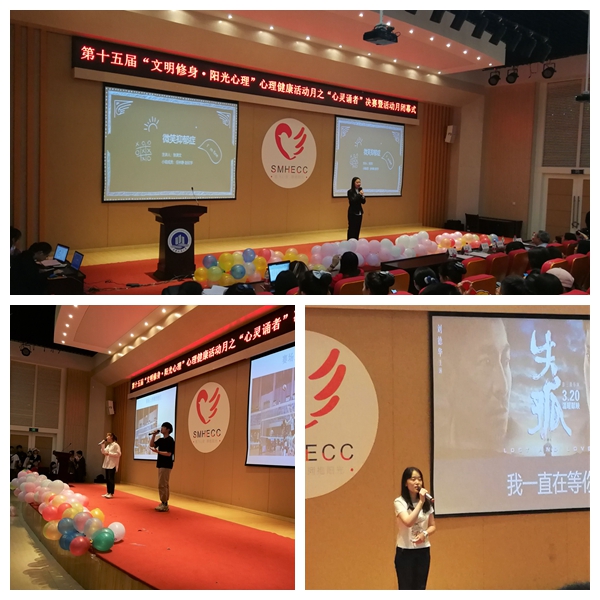 14点30分,活动准时开始。主持人邓子俊、赵青雨首先介绍了到场嘉宾与比赛流程。随后,宣布比赛正式开始。心灵诵者朗诵比赛在经过海选和初赛的层层选拔后,原创组和经典组各有三组实力选手脱颖而出,他们将在舞台上争夺各组的冠亚季军。经典一组,来自商务策划学院的陈诗航,会计学院的胡鹤轩、苑文欣与穆妍彤,带来作品《那些年,我们好像很有钱》;经典二组,来自会计学院的刘好雨与通识学院的胡泽龙朗诵作品《蚁族》;经典三组,来自通识学院的程曾欢带来作品《主角》;原创一组,来自太阳成集团tyc122cc的王烁与商务策划学院的单海龙,带来作品《写给未来的自己》;原创二组,来自太阳成集团tyc122cc的田涛,深情朗诵原创作品《老景》;来自法学院的曹正星与杨岚馨朗诵的作品名为《独白》。在评审们的打分时间段校园十佳歌手罗振隆、王思玉倾情献唱《追梦赤子心》。最终季军为经典三组、原创一组;亚军为经典一组、原创三组;冠军为经典二组、原创二组。除心灵诵者决赛以外,还进行了心理微电影、心理涂鸦展、flash视频、心理剧、电影展、心理主题摄影展等心理月各活动的优秀作品展示。16点整,活动准时结束。