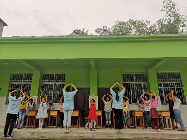 “一心装满国,一手撑起家。”在实践队员的指导下,孩子们的双手变成了国与家,激昂的旋律激发了孩子们的爱国情怀,兴奋之情从一个个细节一个个动作中流露出来。家国情怀是中华民族特有的情愫,当《国家》的音乐响起,所有孩子们和实践队员指尖随着旋律跃动飞扬,传神的语言将爱国之情内化于心外化于行。