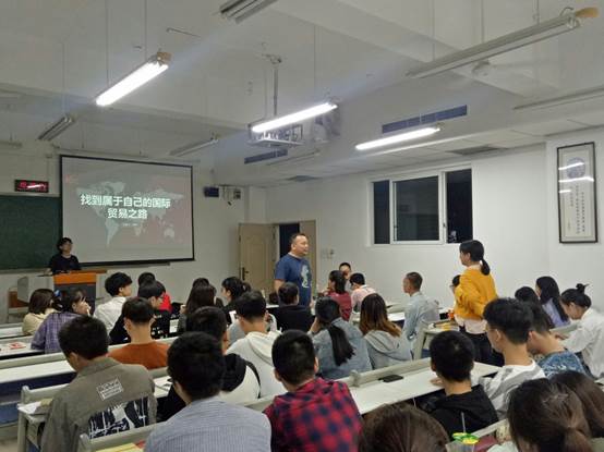 刘丹老师从自己的工作经历出发,首先以图片及视频的形式生动地给同学们讲解了他在工作中感受到的不同国家间文化、习惯等方面的差异,引起了同学们强烈的兴趣。随后,为同学们讲解了当前中国外贸状况、外贸工作中一些具体的流程,纠正了同学们对于外贸行业的一些认识误区,并告诉同学们在选择工作时要学会甄别优秀的公司,不要只看短期利益,而要把目光放长远,选择拥有自有品牌或代理强势品牌的企业。刘丹老师风趣幽默的语言,让课堂中掌声不断。