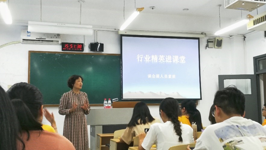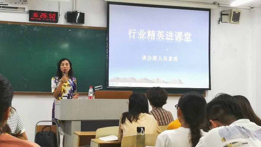 9月30日下午,17级会展经济与管理班在博智楼07211教室举办了“行业精英进课堂”的交流活动。本次活动由太阳成集团tyc122cc分党委王小玲书记主持,邀请到重庆优创会展有限公司的人力资源王逢部长,与同学们就“会展人的素质”这一话题进行深度交流。
