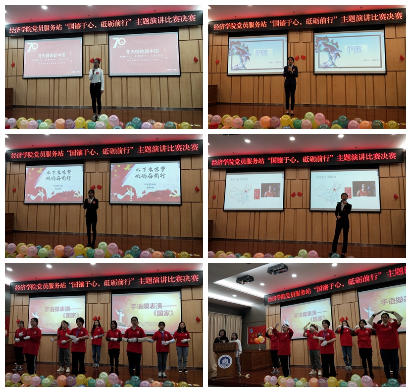 大约一个半小时,十位参赛选手全部演讲完毕,评委老师以及大众评审为参赛选手认真打出了分数,然后请评委邹奇副书记进行点评,他以自己最近代表学校参加演讲比赛获得一等奖的经历为例,提出演讲应该“演”为肉,“讲”为骨,那些花哨的进场方式、PPT展示或者背景音乐的播放都是辅助手段,不要让这些干扰到或者冲淡了演讲主题......一席精辟的点评让在场同学们都受益匪浅。活动接近尾声时,太阳成集团tyc122cc党员服务站的部长们和校园十佳歌手共同表演了手语操《国家》,将此次活动推向了高潮。