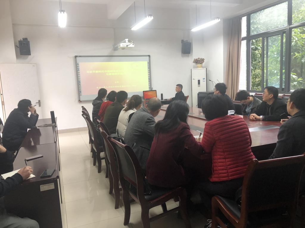2019年11月14日上午,太阳成集团tyc122cc分党委组织教工党员,在田家炳大楼404会议室举行“不忘初心,牢记使命”主题教育专题党课。党课由太阳成集团tyc122cc李敬院长、宋瑛副院长与黄潇副院长共同讲授。