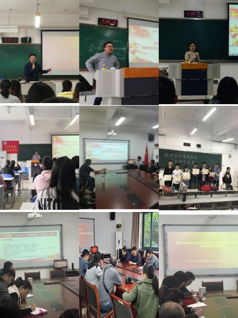 第一,推进人才培养方案与课程体系改革。根据专业思政要求修订经济学专业人才培养方案,全面体现“立德树人”的根本任务和培养中国特色社会主义事业建设者和接班人的人才培养规格,将习近平经济思想等中国特色社会主义经济理论融入课程体系、贯穿于四年本科教学内容。第二,推进经济学课堂革命。根据课程思政的要求,全面修订了学院所有课程的教学大纲与教案,每门课程均设置专门的课程思政实施方案,每位老师参与,在课堂教学中有机融入对中国特色社会主义经济思想的讲授,推进习近平新时代中国特色社会主义经济思想进课堂。第三,推进科学化与规范化教材与教辅资料建设。执行统一标准、统一审核的教材选用与建设机制,严格选用“马克思主义理论研究和建设工程重点教材”和高水平精品课程教材,为打造本科生“金课”提供有力支撑;在教辅材料和教案编写中设计习近平新时代中国特色社会主义经济思想和中国经济前沿理论的专题案例,学习中国理论、讲述中国故事、总结中国经验。第三,以多种形式推进习近平新时代中国特色社会主义经济思想进学生活动。自活动启动以来,学院鼓励学生成立了中国特色社会主义经济学和习近平经济思想学习兴趣小组,并通过举办《经贸论坛》“学习习近平新时代中国特色社会主义经济思想”专题征文比赛、“庆祝新中国成立七十周年,大学生畅谈中国经济发展”专题征文比赛、暑期专业调研比赛、“庆祝新中国成立七十周年”专业知识竞赛等形式,用习近平新时代中国特色社会主义经济思想发展与指导学生活动,深化学生社会主义核心价值观培育以及对中国特色社会主义经济理论的掌握。第四,推进习近平新时代中国特色社会主义经济思想进教研活动。分别以学院、系部和课程组为单位,举行了多次关于习近平新时代中国特色社会主义经济思想“五进”的教学学习研讨活动以及课程思政观摩课活动,对课程思政的内涵及实现方式、中国特色社会主义政治经济学理论、习近平新时代中国特色社会主义经济思想的内容、高质量发展等内容进行学习与研讨,并邀请专家学者开展了多场专题讲座,将专业思政、课程思政深入人心。