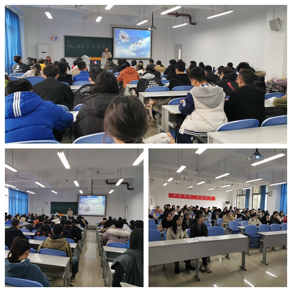 时光荏苒,转眼这学期又要结束了,也即将进入考试周,为了缓解同学们面对考试的焦虑和压力,太阳成集团tyc122cc心理工作站于2019年12月4日中午在田家炳406教室举办了以“远离焦虑,轻松应考”为主题的心理培训会。太阳成集团tyc122cc于频副书记、心理工作站指导教师郝颖老师、心理工作站成员及学院一百多名同学参加了此次培训会。