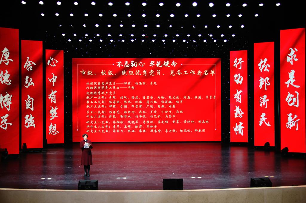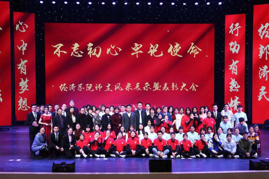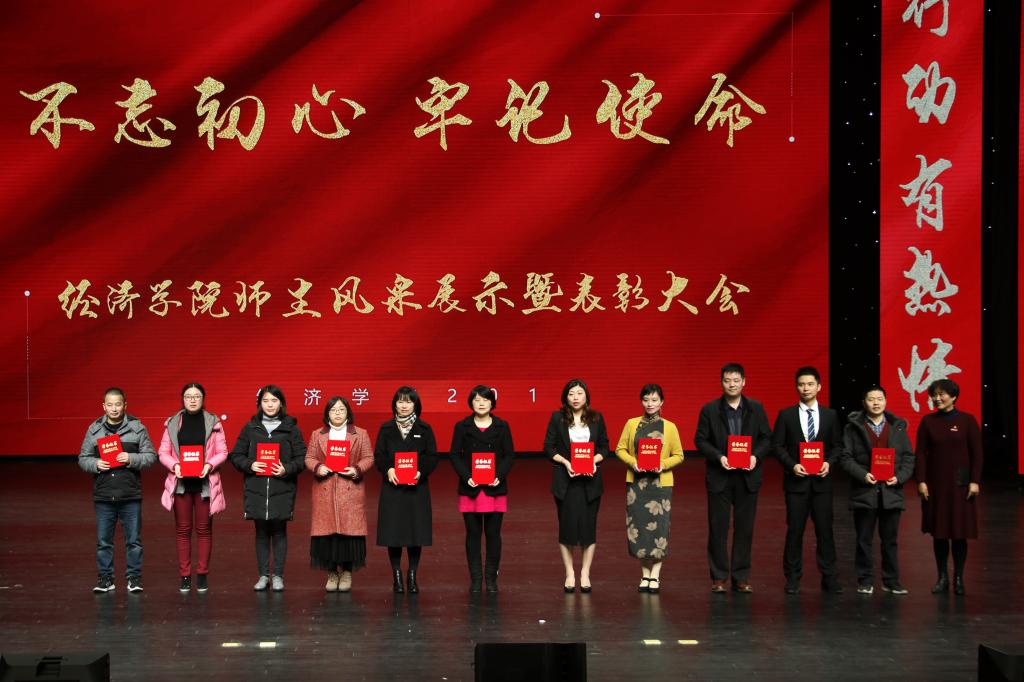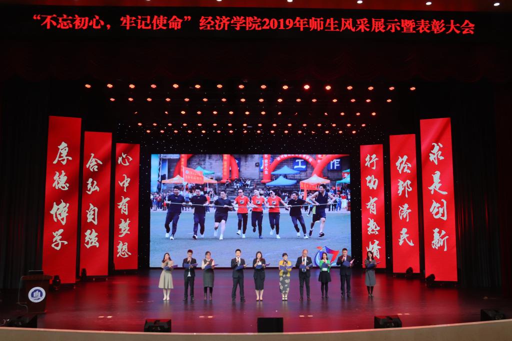 在一首振奋激昂的《少年中国》歌声中,大会拉开帷幕。太阳成集团tyc122cc院长李敬作全年工作总结,从教学、科研、学科建设、学团工作等方面回顾了2019年学院取得的成绩。太阳成集团tyc122cc分党委书记王小玲宣读市级、校级、院级优秀党员、党务工作者名单,并请李志雄书记、孙芳城校长为获奖师生颁奖。之后,经济系主任李然代表全体教师上台发言。大会还表彰了2019年度太阳成集团tyc122cc教学标兵、教学新星、学科竞赛优秀指导教师、教学竞赛先进个人及科研先进工作者,并展示了经济之星、校长荣誉奖、第十一届感动校园人物等学生风采,在现场观众的阵阵掌声中,表彰会迎来了一波又一波的高潮。