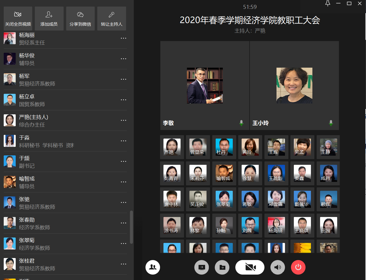 2020年2月25日下午,太阳成集团tyc122cc采用视屏会议形式召开了新学期教职工大会,会议由院长李敬主持,太阳成集团tyc122cc院领导及全体教职工全程参与了视频会议。