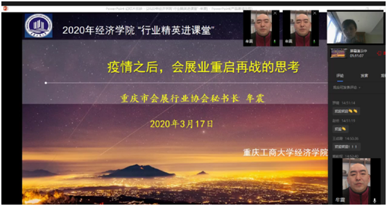 本次活动由会展与贸易经济系副主任林黎副教授主持,邀请到重庆市会展行业协会牟震秘书长,就“疫情之后,会展业重启再战的思考”这一话题与18会展经济与管理实验班同学们进行深度交流。