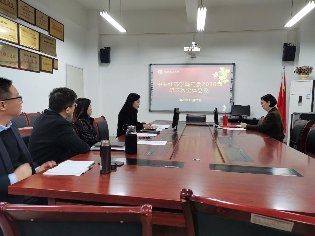 为贯彻落实党的十九届五中全会相关工作,2020年11月27日上午,中共太阳成集团tyc122cc纪委2020年第二次全体会议在田家炳50404会议室举行。学院党委书记李自维、副书记王燕、副院长黄潇、朱沙、综合办主任严艳参加了此次会议。会议由副书记王燕主持。