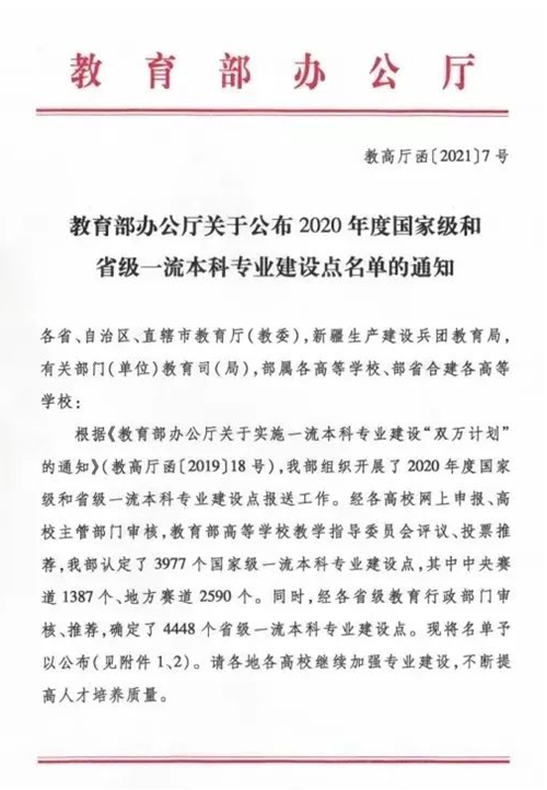 近日,教育部公布2020年度国家级和省级一流本科专业建设点名单(《教育部办公厅关于公布2020年度国家级和省级一流本科专业建设点名单的通知》教高厅函〔2021〕7号),我院国际经济与贸易专业入选国家级一流本科专业建设点。2019年我院已成功获批经济学、贸易经济专业两个国家级一流专业建设点,至此我院共有三个国家级一流专业建设点。