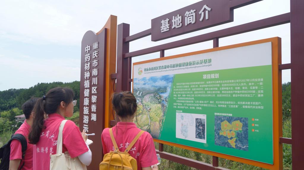 2021年7月12日,122cc太阳集成游戏太阳成集团tyc122cc“改革基本公共服务供给,提升农村居民幸福感”南川乡村振兴社会实践团前往重庆市南川区黎香湖镇东湖村,对当地中药材种植示范基地调研考察。为助推现代农业转型升级,东湖村始终坚持将中医药产业与旅游观光相结合的发展思路,加快中药材发展步伐,发展农村特色产业,助力乡村振兴。