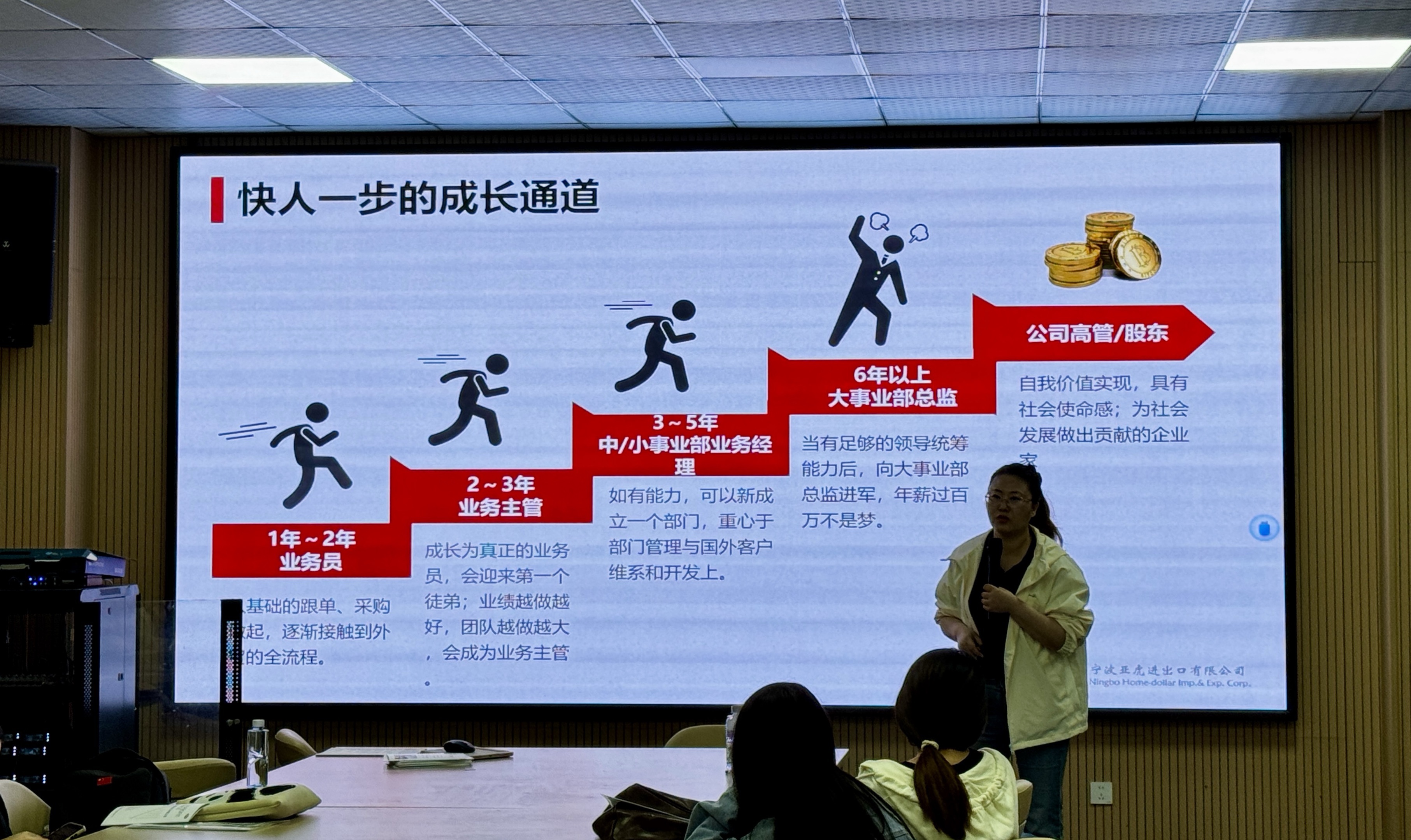 分享会上,亚虎人才总监杨秋芳女士对公司和本次招聘做了详细介绍。作为自1992年启航到如今的行业标杆,亚虎进出口实力亮眼,年出口额达8.5亿美元,连续十年保持超30%的复合增长率,业务覆盖全球60余个国家,拥有超10万+SKU的庞大产品矩阵,还坐拥8.7万㎡自有现代化园区,公司稳居中国民营外贸500强与宁波出口十强,在全球供应链领域占据重要地位,现汇聚近2000名精英共同发展。杨秋芳女士表示,亚虎进出口将带来多类岗位的招聘需求,为学子提供“挥洒才华的顶级平台”。
