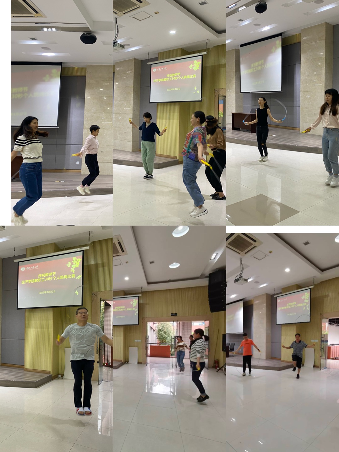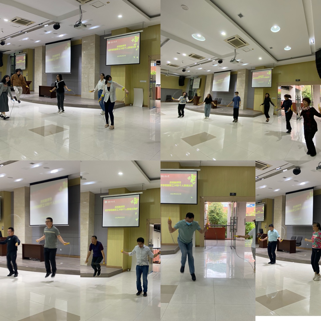 今年是我国第38个教师节,由于疫情和高温因素影响,开学时间推迟,错过了教师节。开学后,学院工会在学院党政领导支持下,按照往年教师节正常活动程序,补办了快乐跳绳比赛活动,以营造教师节氛围,丰富教师们业余文体活动,也是学院建设“模范职工之家”的常态化活动,得到老师们积极支持和参与。