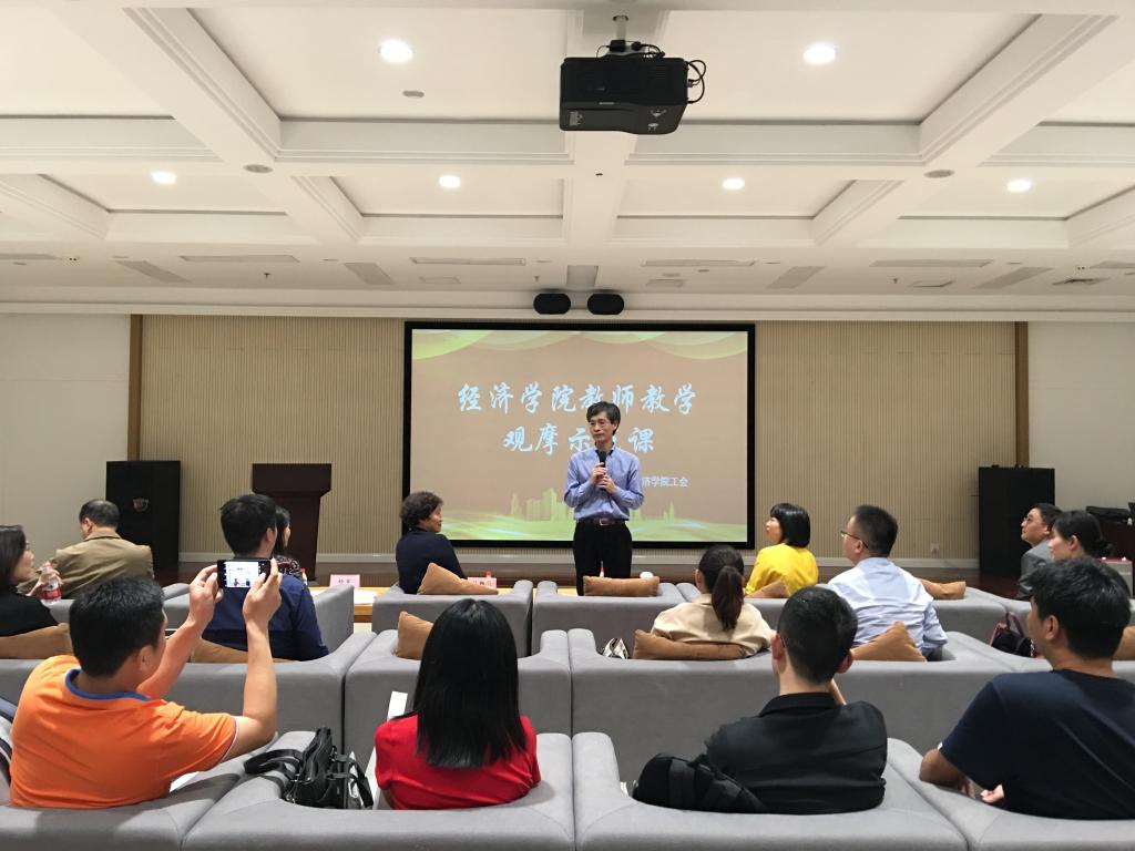 第一阶段的讲课比赛包括两个环节,评审课程教学大纲、课程设计等书面材料和现场讲课比赛。在讲课比赛中,9名青年教师分别进行了精彩的演讲,最后评选出了一等奖2名、二等奖2名、三等奖2名,贸经系的林黎、孙畅老师以其优异的表现得到6名评委的高度评价,并列获得一等奖。比赛结束后,学校评估办杜主任对比赛做了精彩的点评,她认为太阳成集团tyc122cc组织的青年教师讲课比赛非常有意义,是学校提高本科教学水平、提高人才培养质量的根本任务和要求在学院的具体落实。杜主任从国家、学校对本科教学评估的角度,提出了学院和每一位老师都应该进一步思考和明确的问题,教学的目标究竟是以传授知识为主还是以传授学习方法、培养学生学习能力为主。杜主任还对青年教师提出了中肯的教学建议:一是课堂教学中一定要考虑和坚持“以学生为中心”的教学理念;二是要把信息技术与课程教学内容深度融合;三是年轻博士老师要把科研成果融入到课堂教学中。